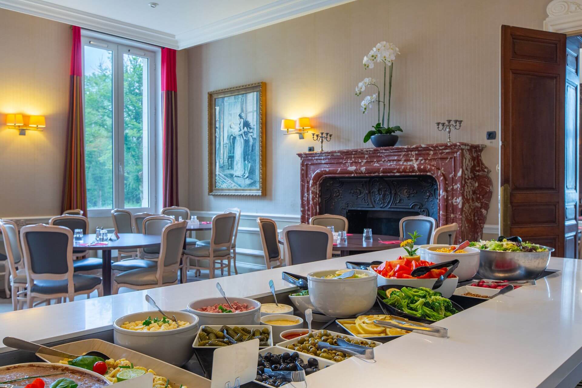 - La pension complète service en buffet (boisson à table – vin & eau), du diner du 1er jour au petit-déjeuner du jour de votre départ, incluant deux diners à thème au cours de votre séjour, apéritif de bienvenue