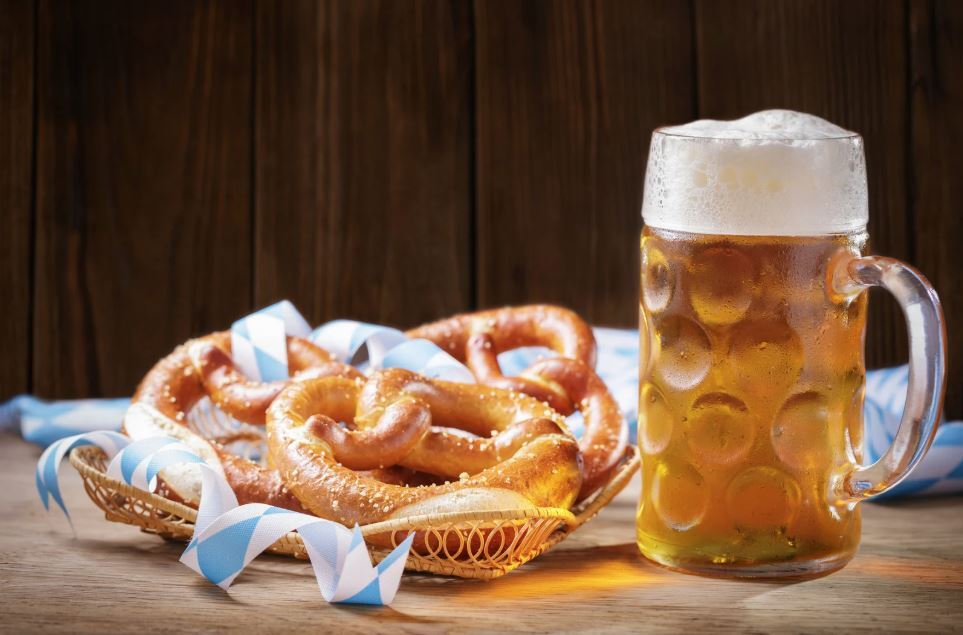 - Le déjeuner à la fête de la bière avec une grande bière d’un litre.